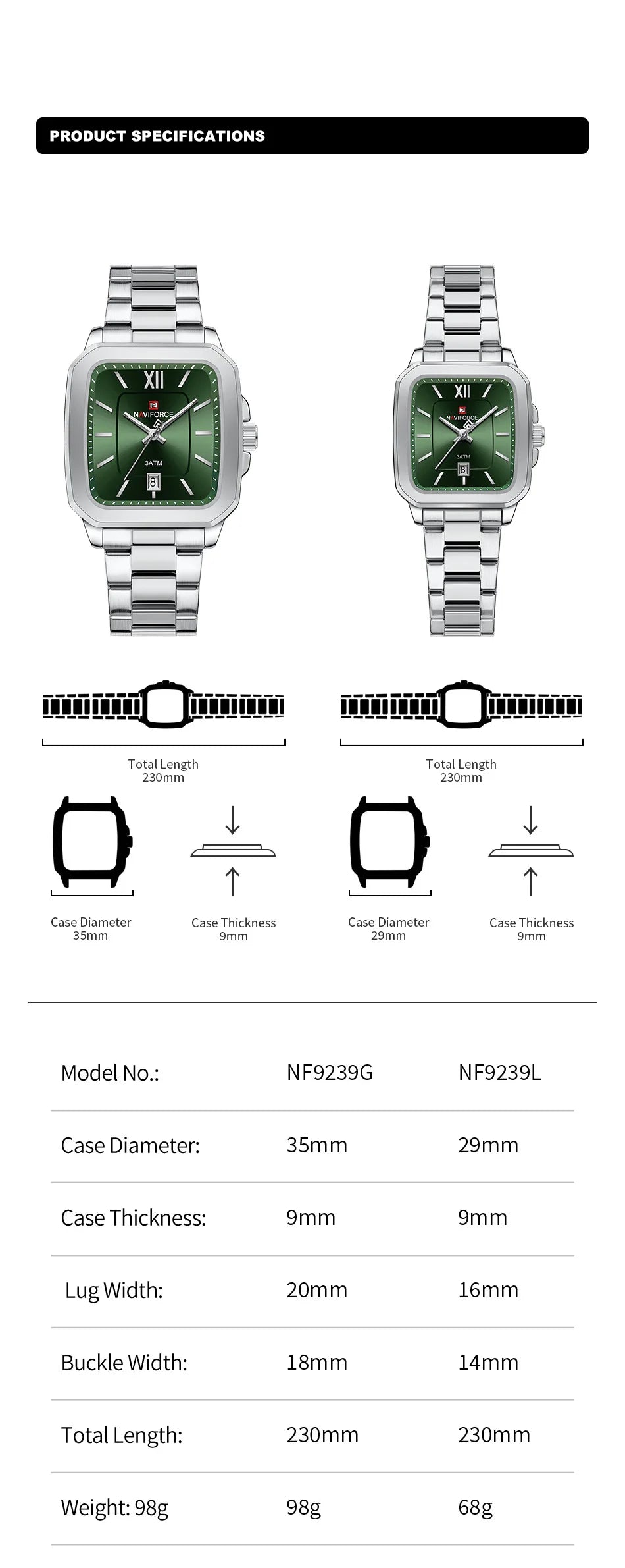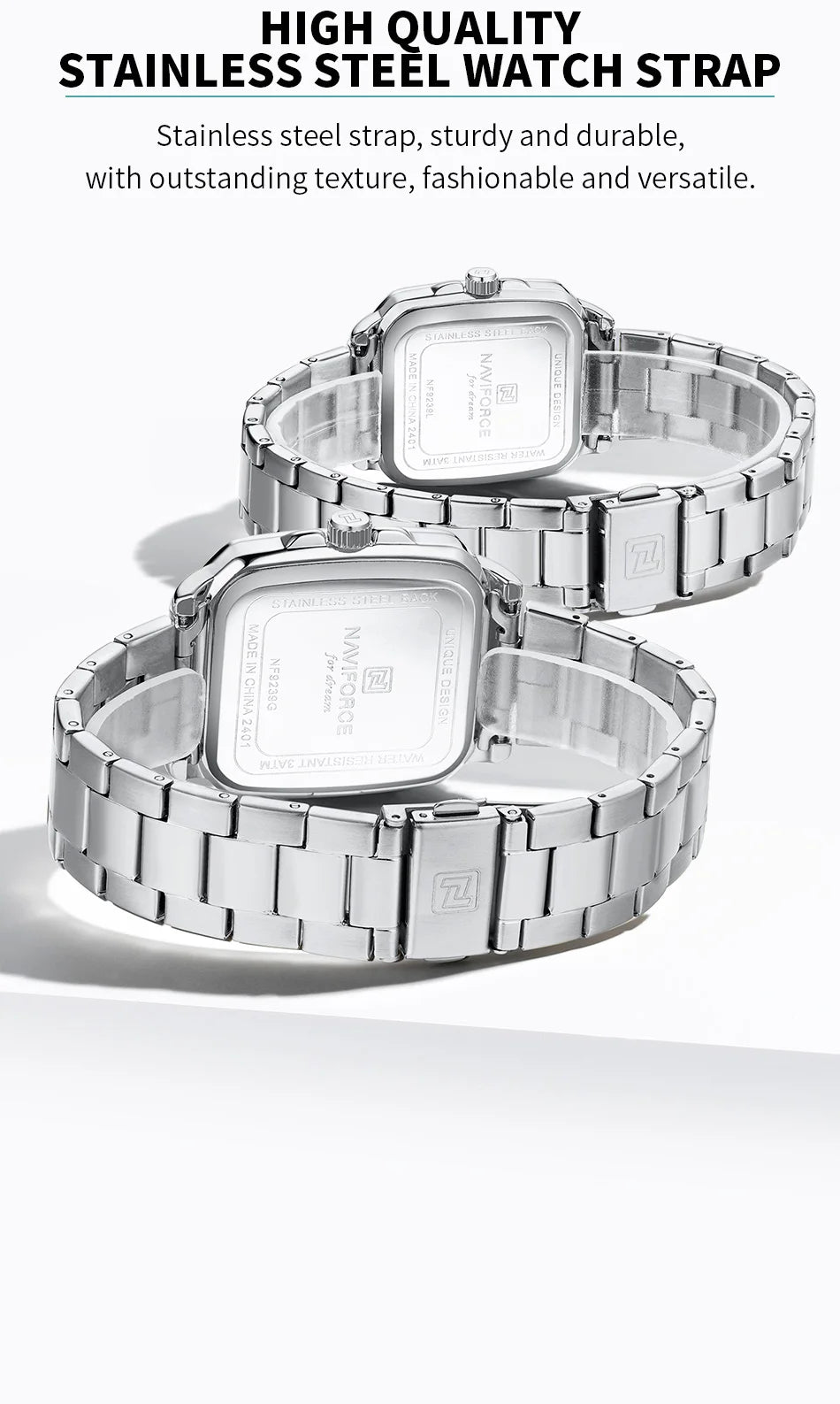 NAVIFORCE Couple Watch Luxury Brand Waterproof Quartz Watch Fashion Simple Calendar Date Stainless Watch Women Men Lover's Gift