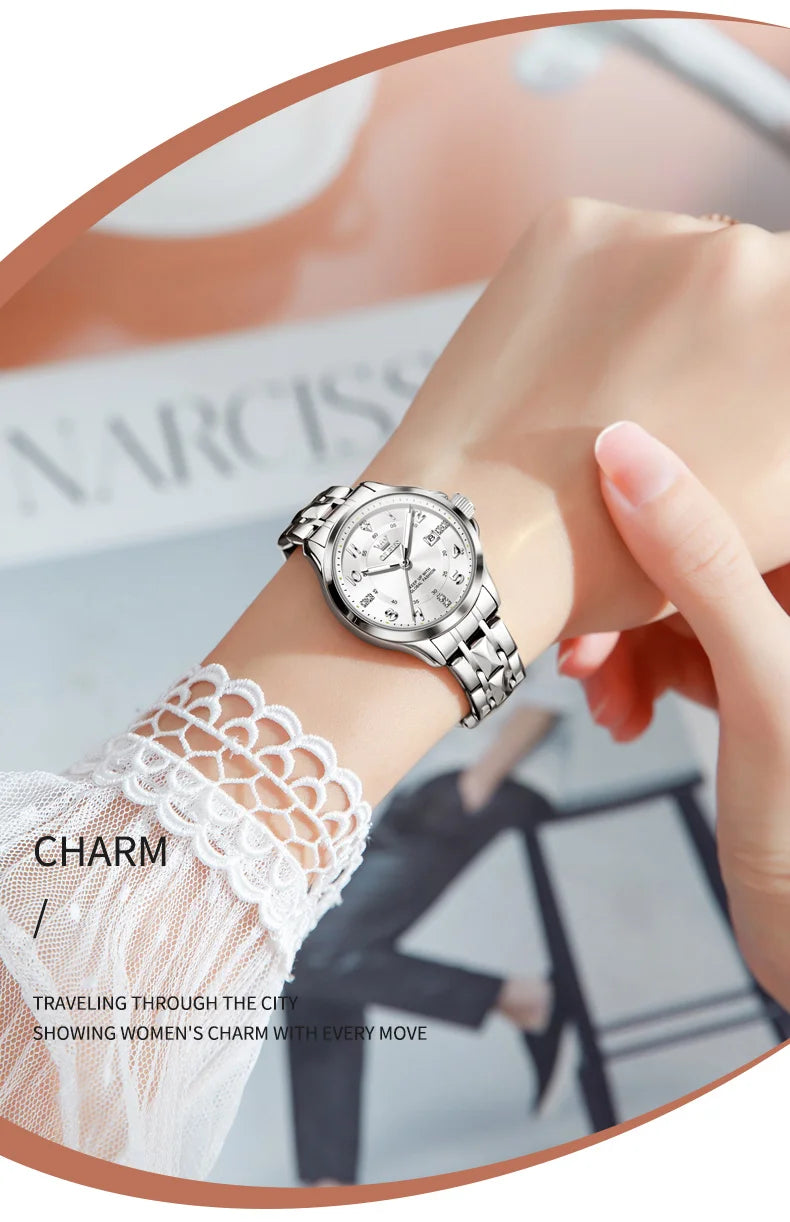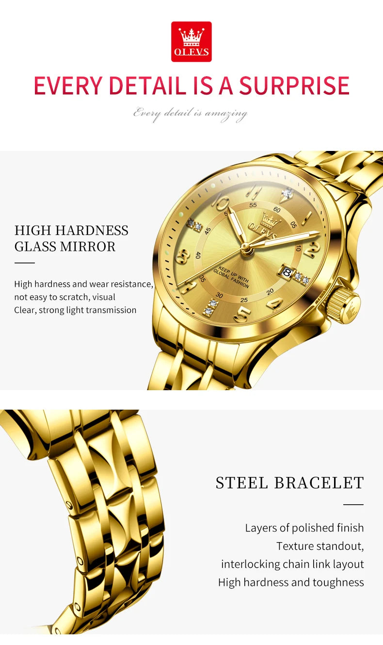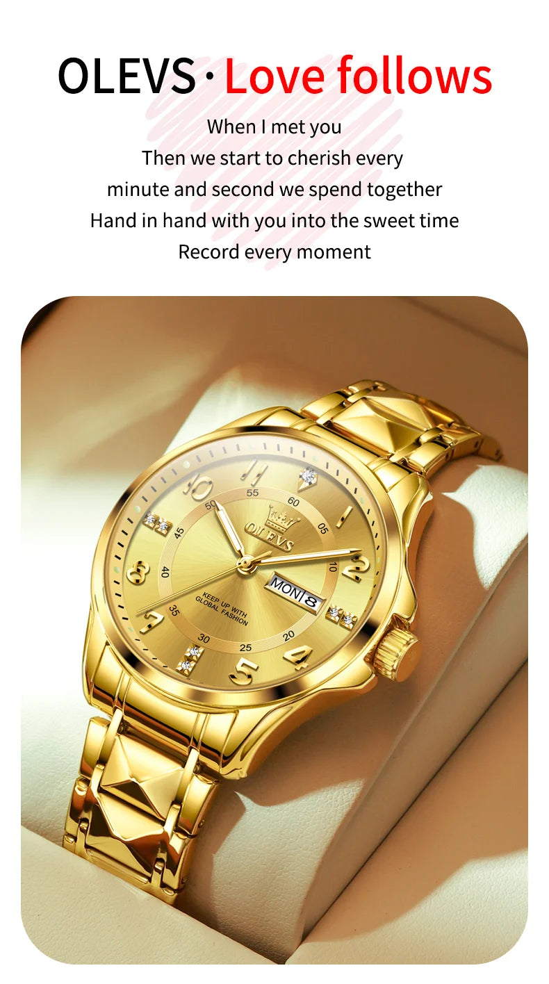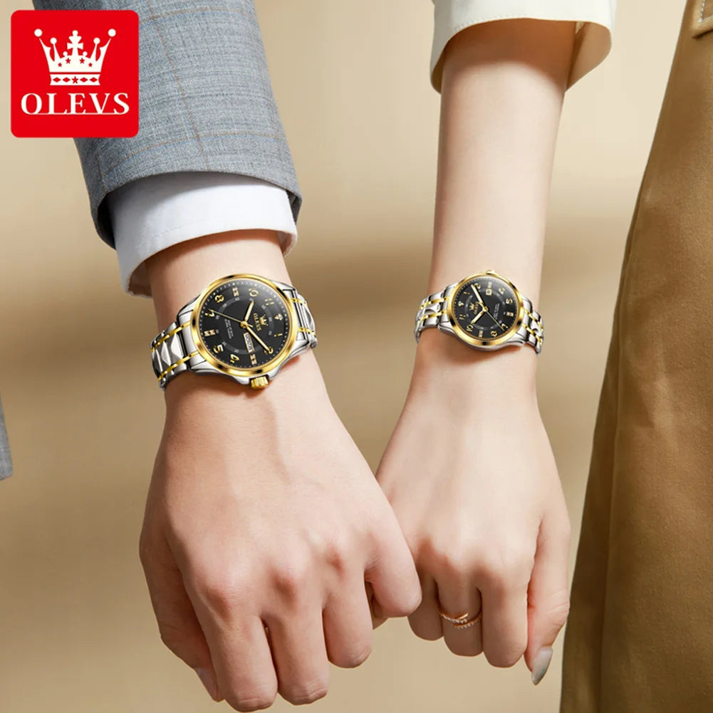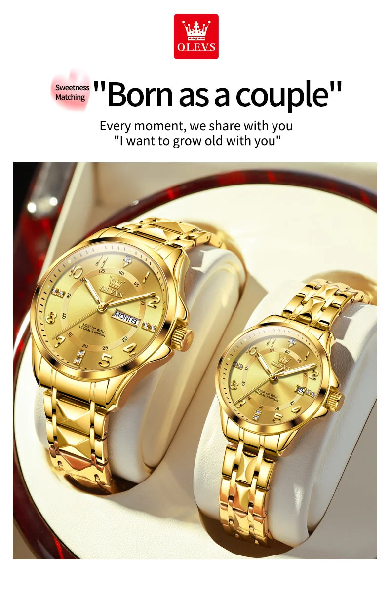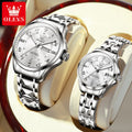 OLEVS Luxury Brand Couple Watch Classics Dual Calendar Wristwatch for Men and Women Waterproof Lover's Watch Set Gift Box