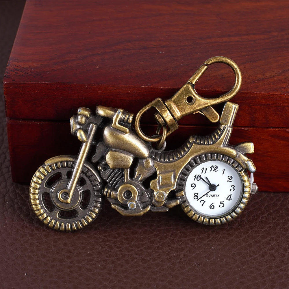 Quartz watch Small bronzed motorcycle shape pocket watch Small racing nostalgic pocket watch wall watch