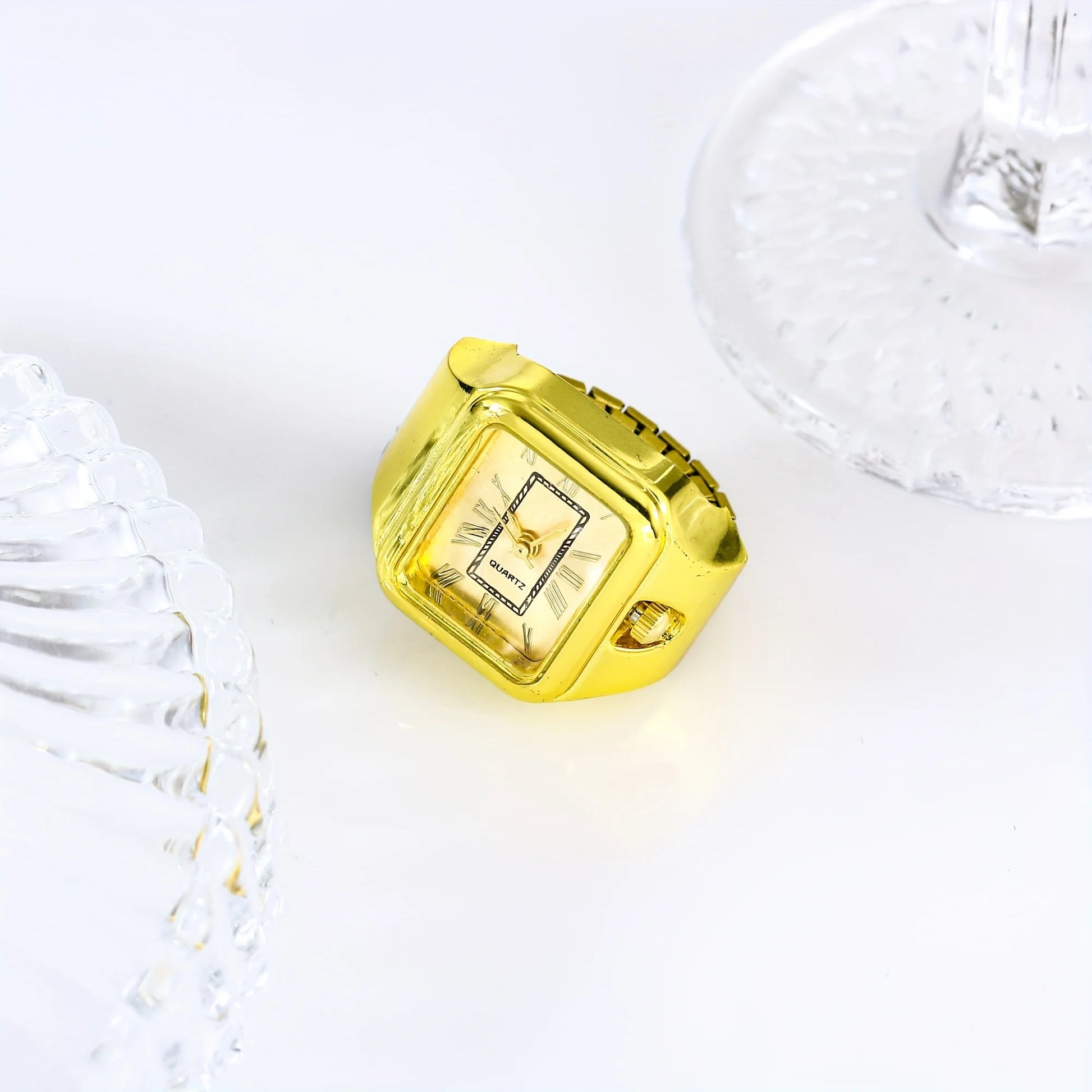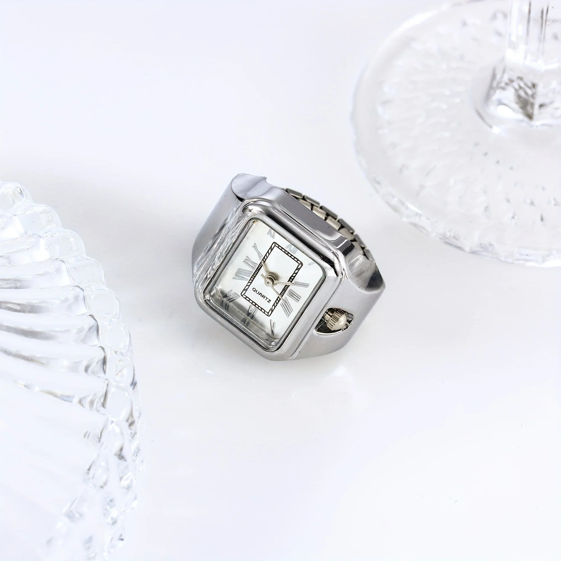 Square ring watch, minimalist finger watch, quartz watch, couple watch, creative ring watch