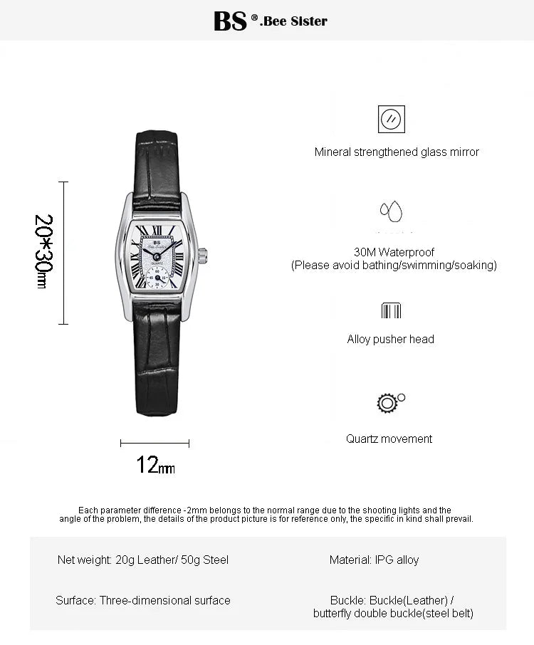 Watch Weight: 20g (Leather)/ 50g (Stainless Steel)